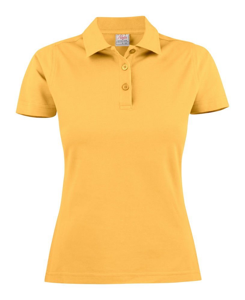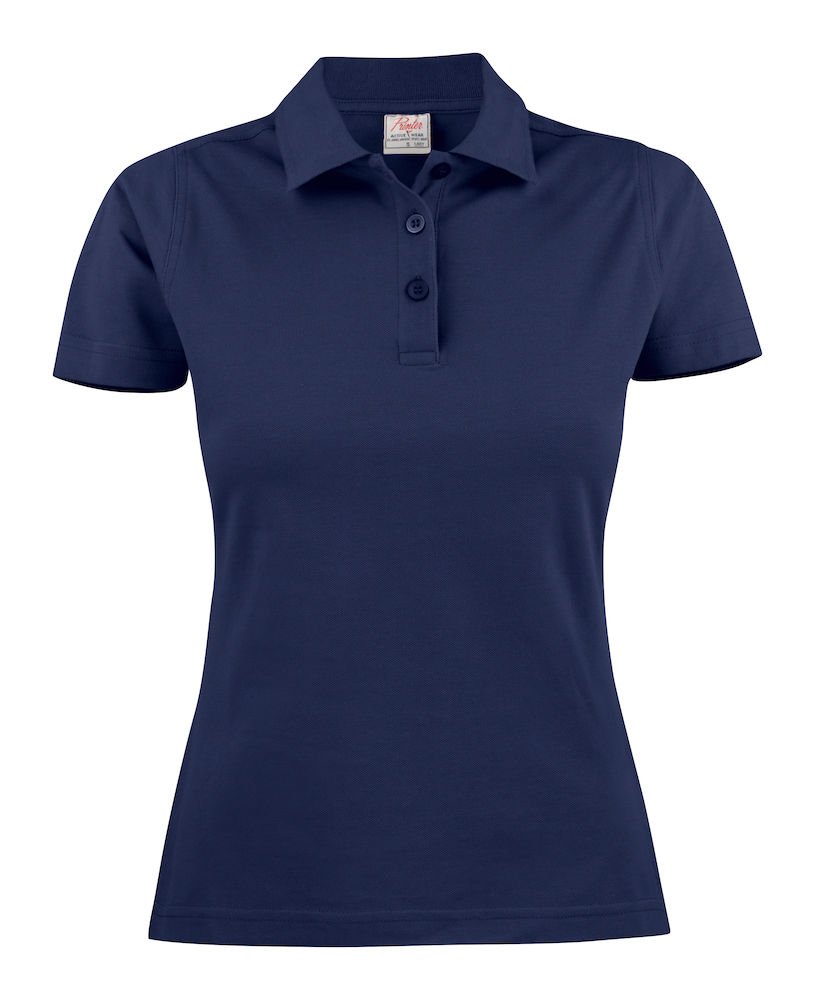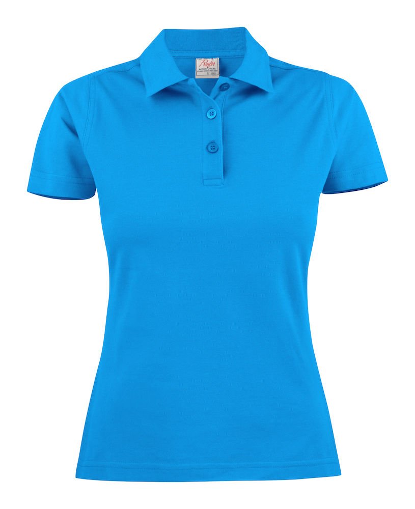 Surf Lady Printer Active Wear. Polo piqué femme, coupe cintrée avec fentes latérales, fentes de côtés et patte 3 boutons. Lavage 60°. Version femme du polo surf RSX.